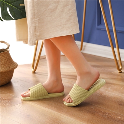 纯色华夫格浴室居家PVC凉拖鞋两双装【PVC/浅绿+浅灰】 |