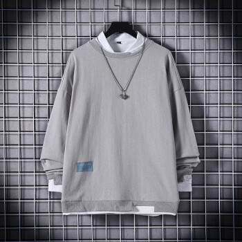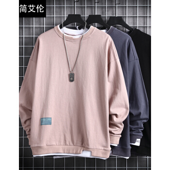 简艾伦 卫衣男T恤男士潮牌ins大码宽松圆领假两件长袖2020春季新款潮流上衣 TBK19209粉红色 XL |