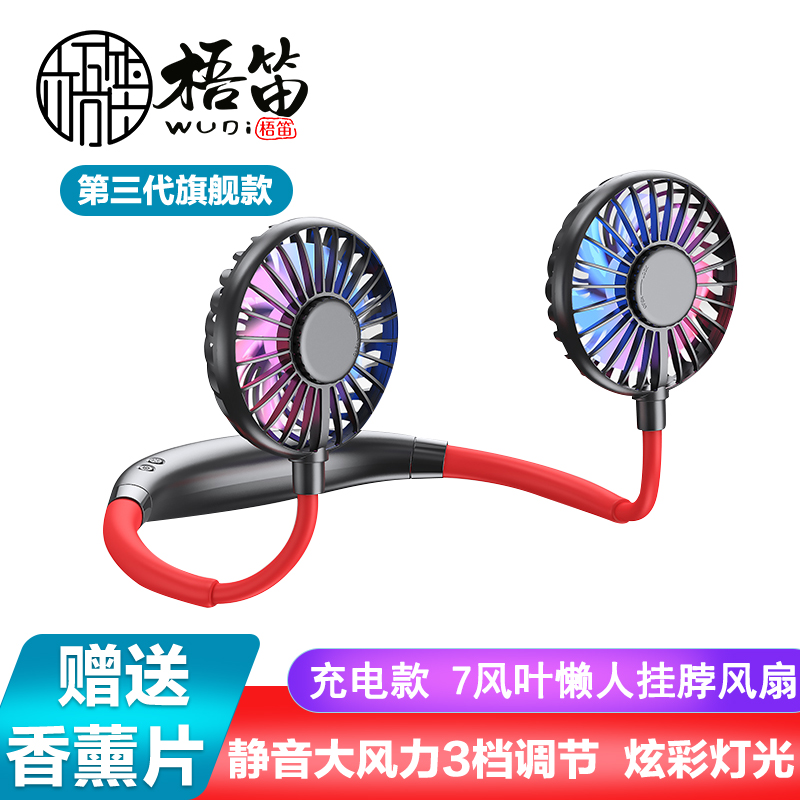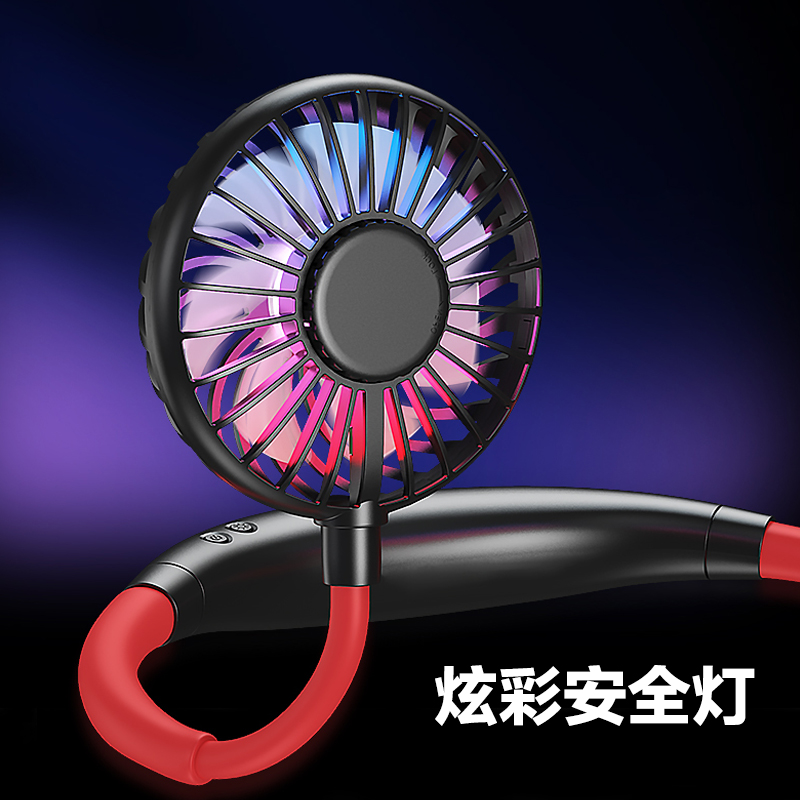 【超值单品】【带彩灯+香薰】第三代旗舰款7叶片挂脖风扇USB充电型【塑料+硅胶/黑红色】 |
