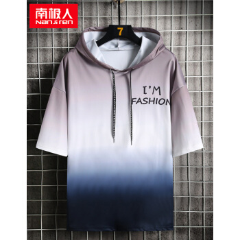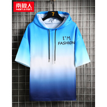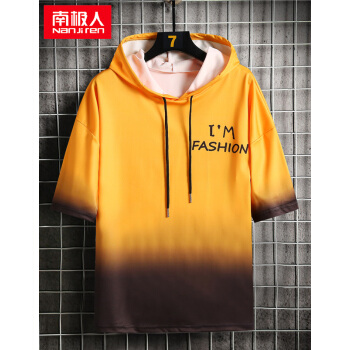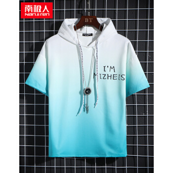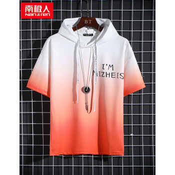 南极人短袖卫衣男薄款t恤2020夏装新款潮流男士连帽打底衫男女情侣套头衫渐变韩版运动上衣T恤 W804绿色短袖 XL |