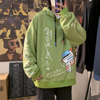 潮至 连帽卫衣男2020夏秋新款ins港风长袖T恤男士宽松大码休闲外套男装上衣 牛仔蓝 S |