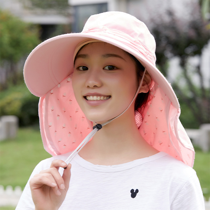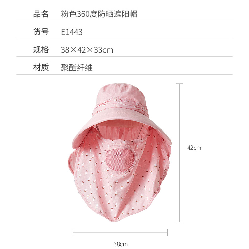 夏日出行360度防晒帽遮脸护颈太阳帽防晒帽【100%聚酯纤维/粉色】 |