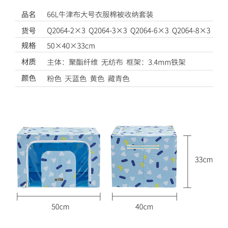 家用礼花碎片600D牛津布收纳箱66L 3个装【主体:90%聚酯纤维 10%无纺布 框架:3.4mm铁架/图片色】 |
