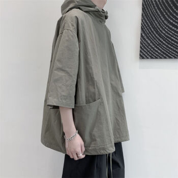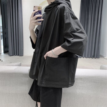 【卫衣】夏季新款短袖连帽t恤薄款卫衣男潮牌原宿风宽松港风夏季五分袖外套韩版潮流七分袖简约夏装上衣男 黑色 2XL |