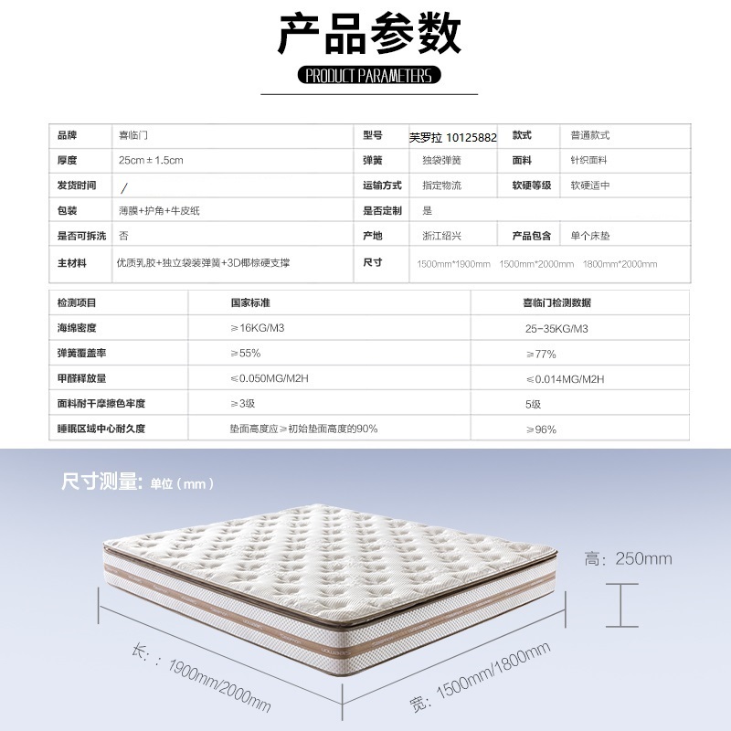 正反两用乳胶椰棕席梦思床垫(1.5米床)【独立弹簧+乳胶+椰棕/白色】 |