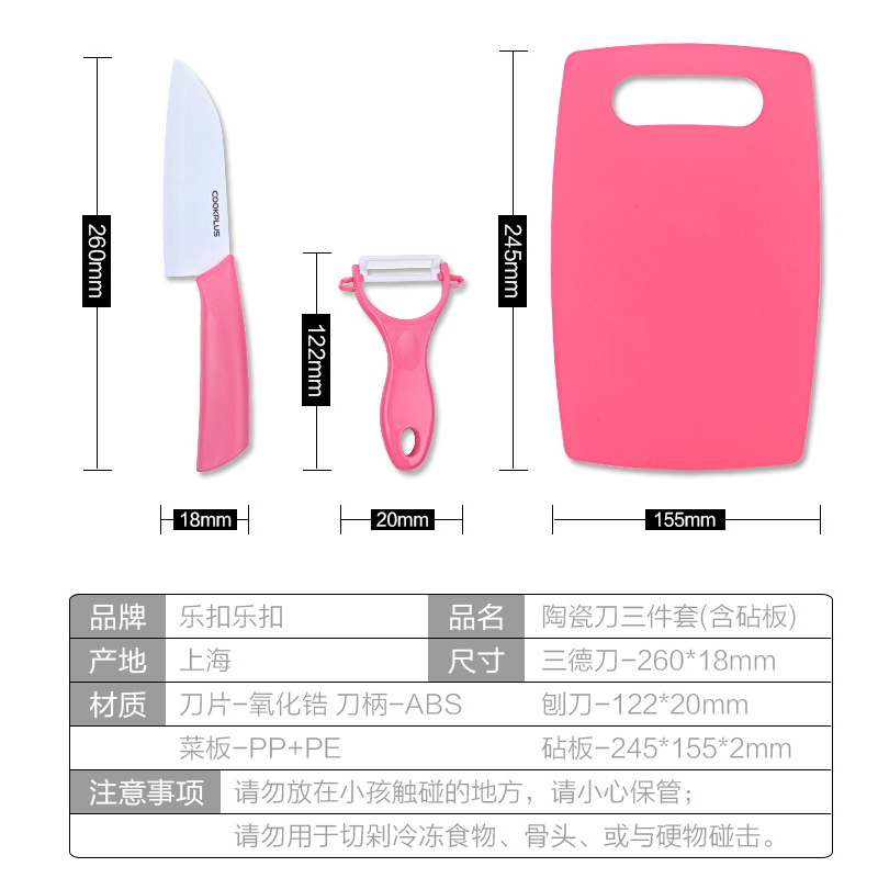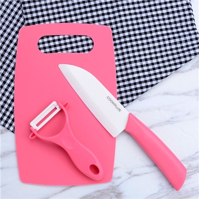 陶瓷刀持久锋利3件套(含钻板)粉色【塑料/粉色】 |