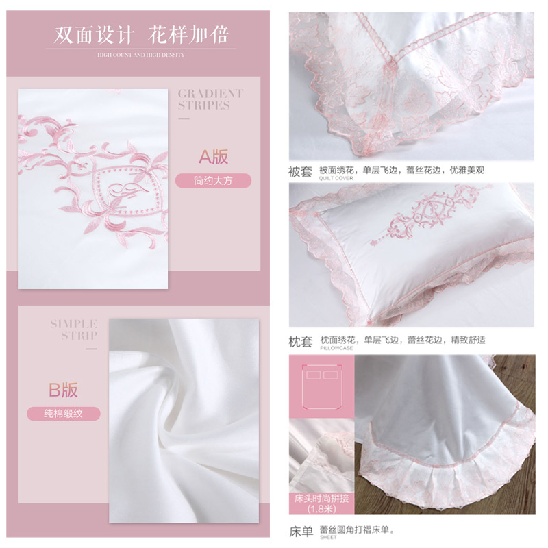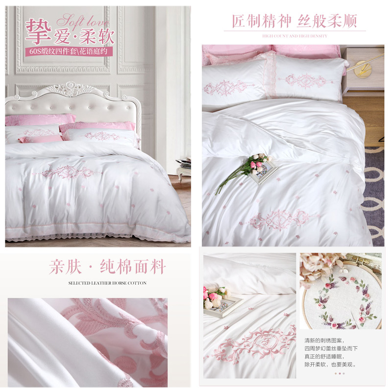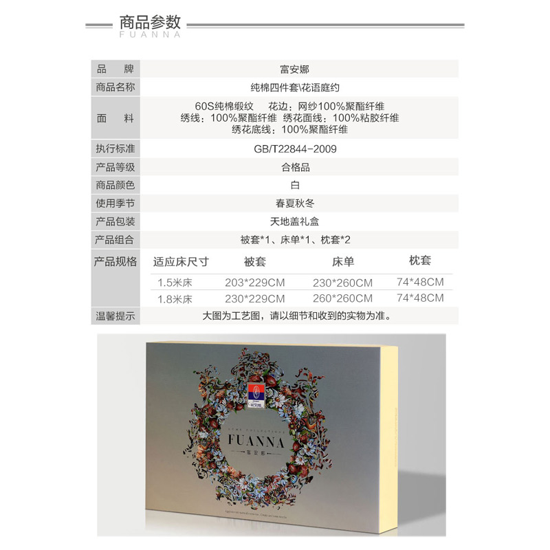 花语庭约 床单四件套(被套1件床单1件枕套2件)(适合1.8米床)【纯棉缎纹/白】 |