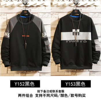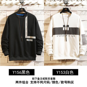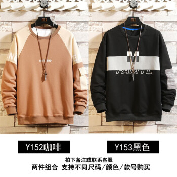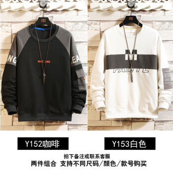 【两件装】慕林初客卫衣男春夏季圆领印花宽松休闲运动外套男士长袖T恤上衣男生薄款套头潮流衣服春秋男装 Y152咖啡+Y153白色 XL |