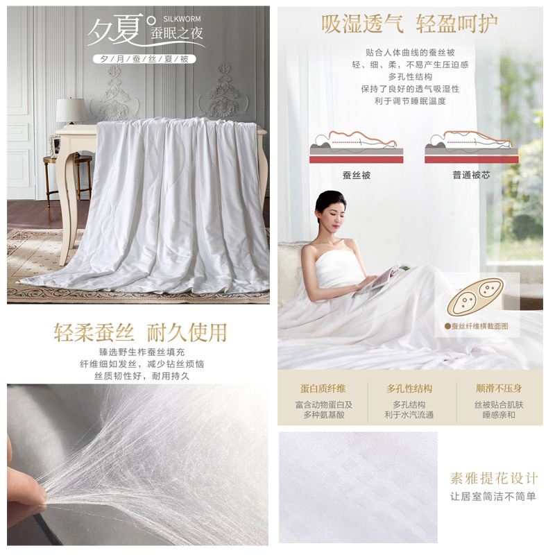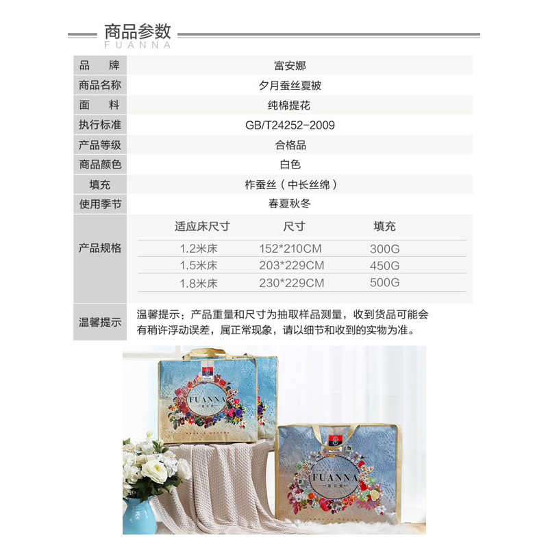 夕月纯棉蚕丝夏被(被芯1件)(适合1.5米床)【面料:纯棉提花;填充:柞蚕丝/白】 |
