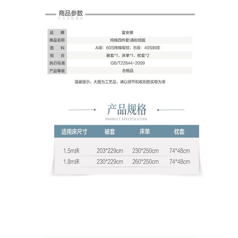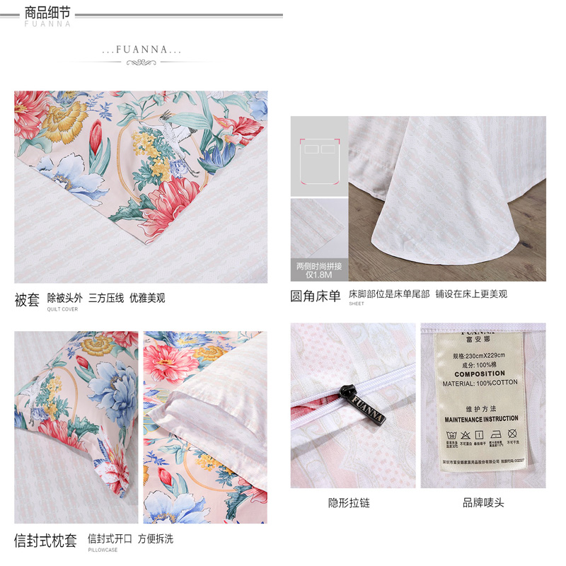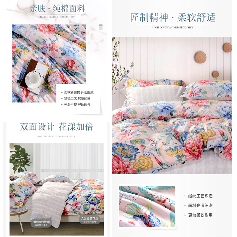 洛粉倾国 床单四件套(被套1件床单1件枕套2件)(适合1.5米床)【纯棉/粉色】 |