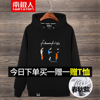 南极人卫衣男连帽韩版潮流学生帅气春秋季休闲宽松套头青少年男士常规款印花卫衣 春秋款连帽卫衣-黑/手机控 XL(建议135斤-150斤可穿) |