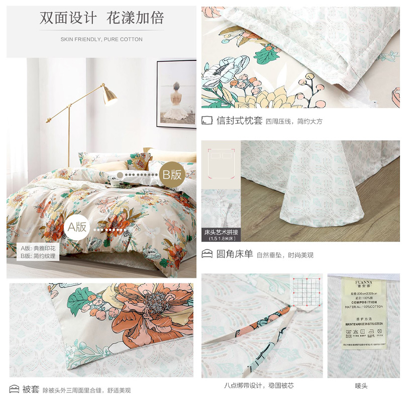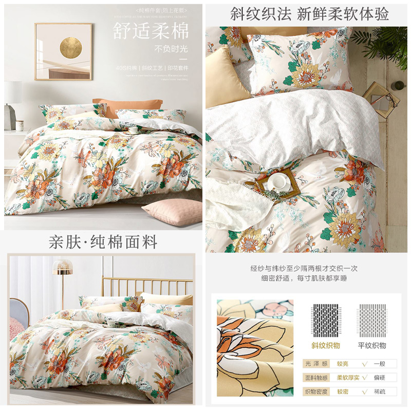 陌上花颜 床单四件套(被套1件床单1件枕套2件)(适合1.5米床)【纯棉/黄】 |