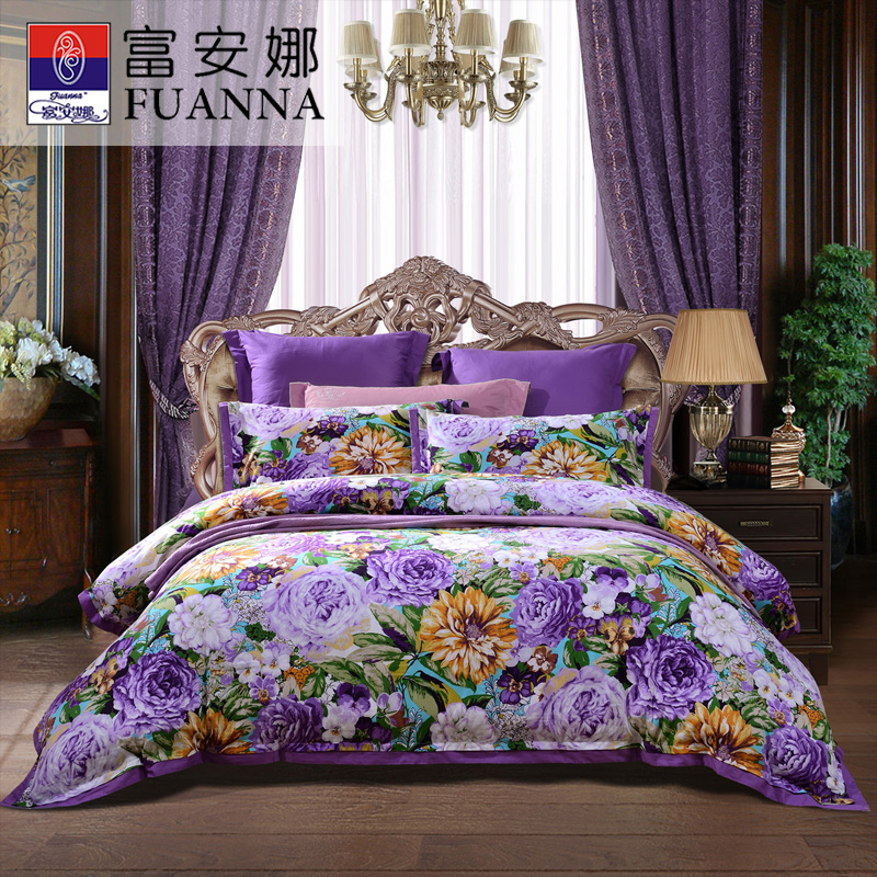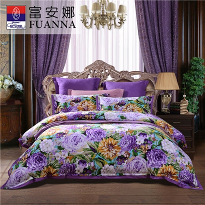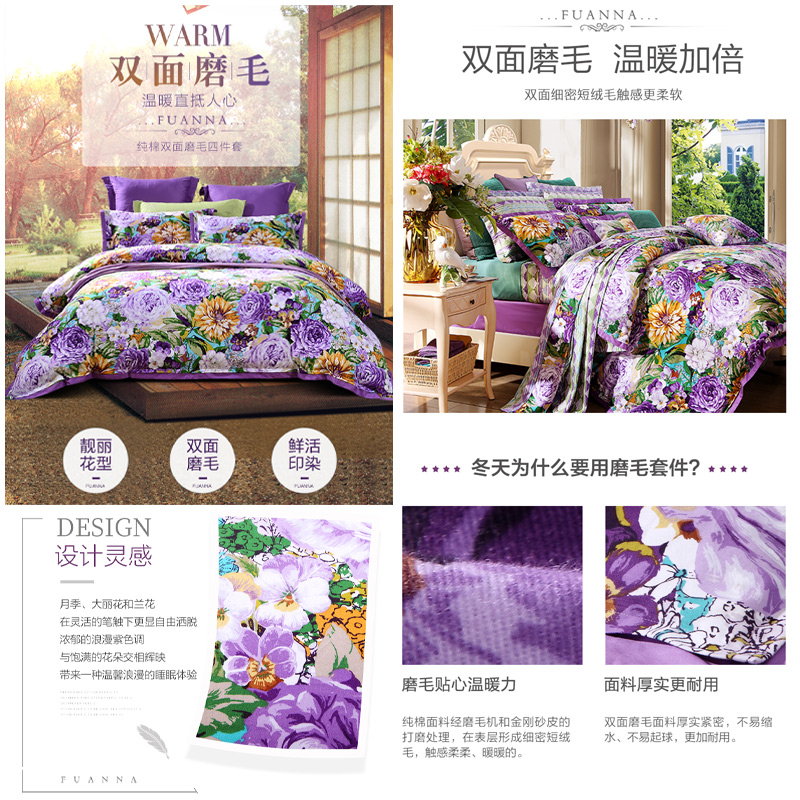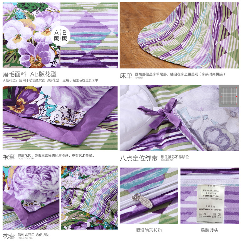 天姿国色 床单四件套(被套1件床单1件枕套2件)(适合1.5米床)【纯棉磨毛/紫】 |