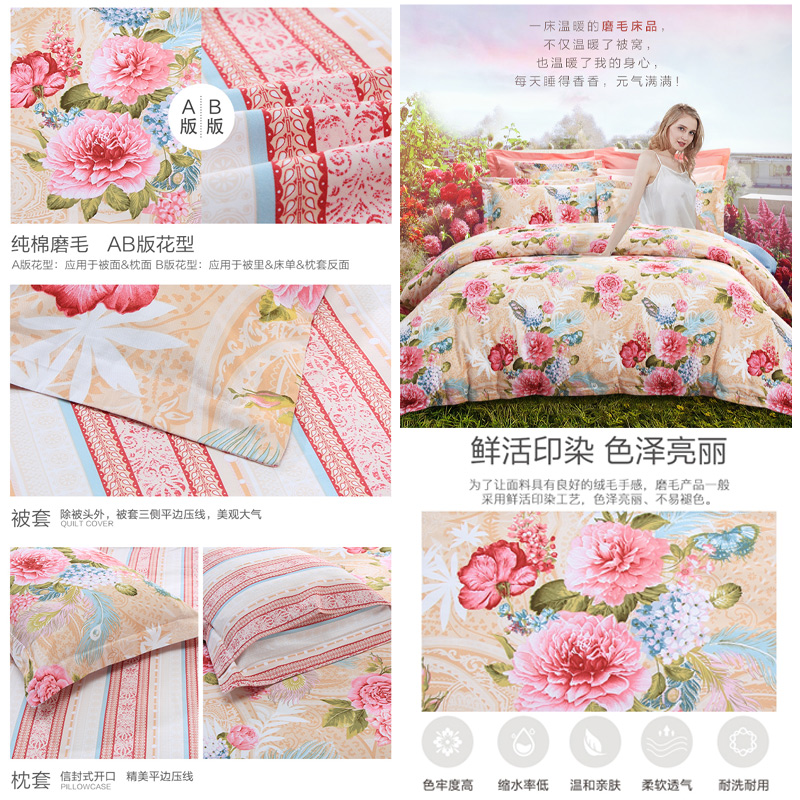 风中奇缘 床单四件套(被套1件床单1件枕套2件)(适合1.5米床)【纯棉磨毛/浅咖】 |