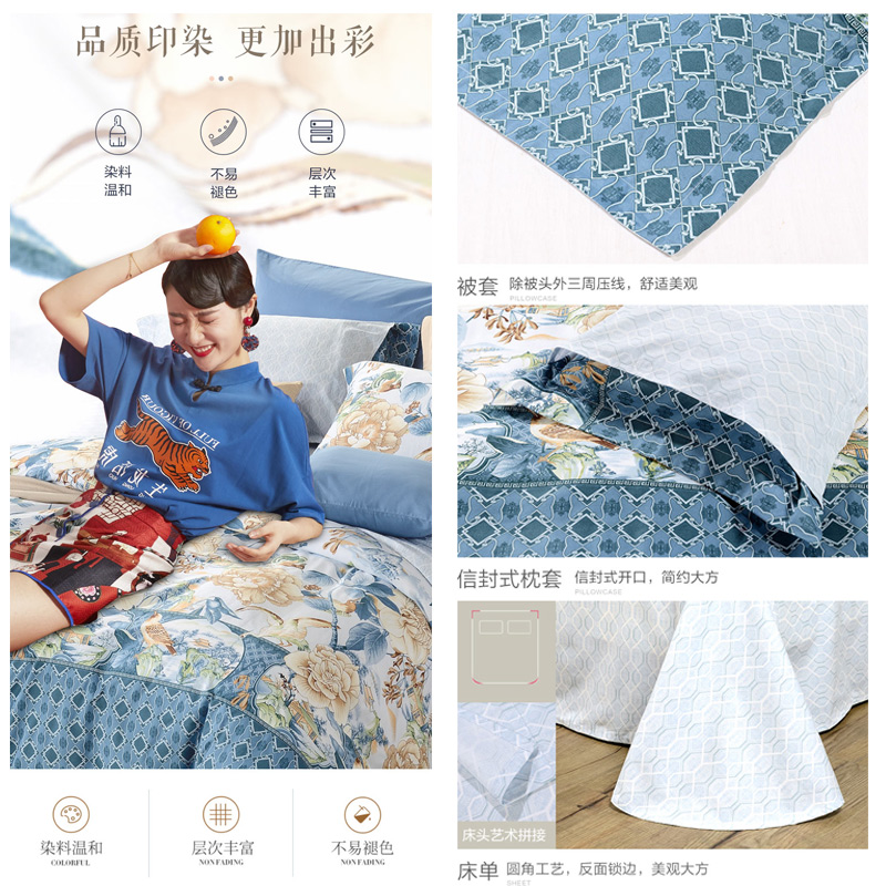 玥鸣涧 床单四件套(被套1件床单1件枕套2件)(适合1.5米床)【纯棉/粉】 |