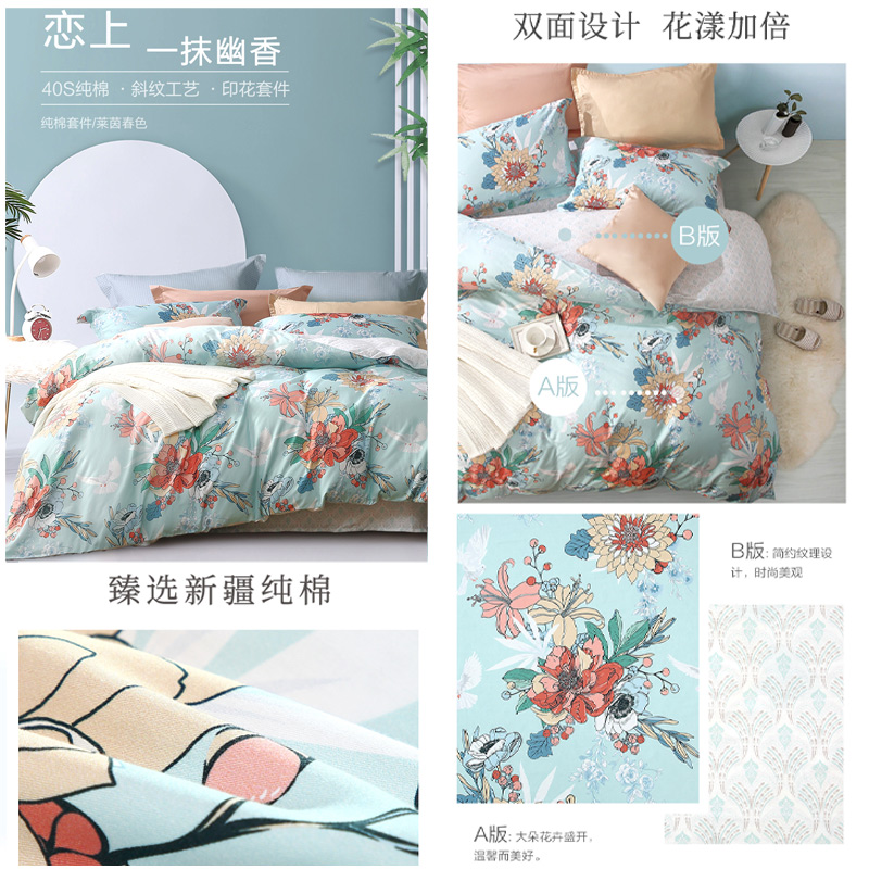 莱茵春色 床单四件套(被套1件床单1件枕套2件)(适合1.5米床)【纯棉/蓝】 |