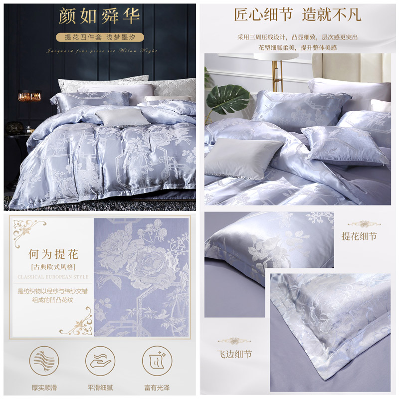 浅梦墨汐 床单四件套(被套1件床单1件枕套2件)(适合1.5米床)【A版:涤莫代尔提花;B版:纯棉/灰】 |