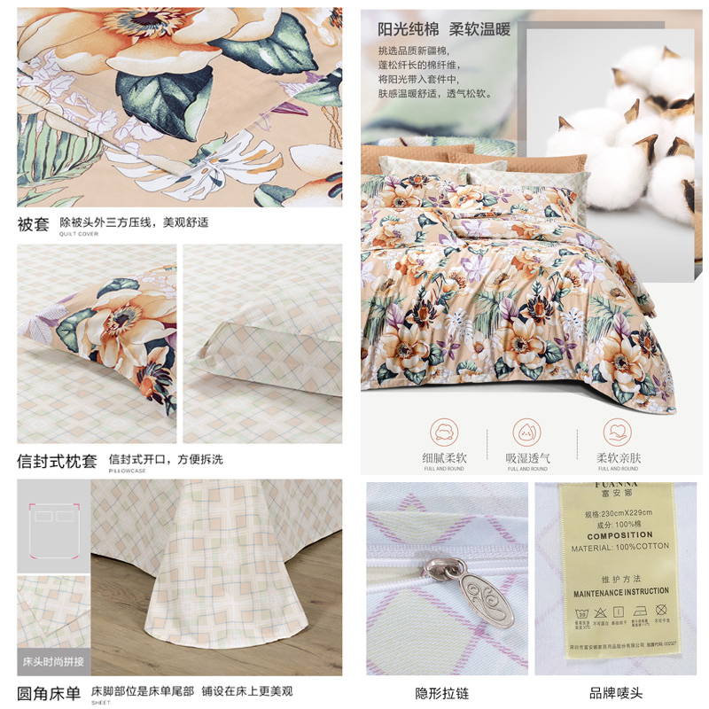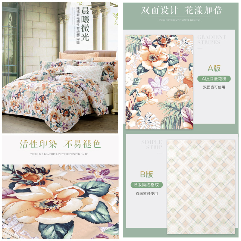 微薇向暖 床单四件套(被套1件床单1件枕套2件)(适合1.8米床)【纯棉磨毛/橙】 |