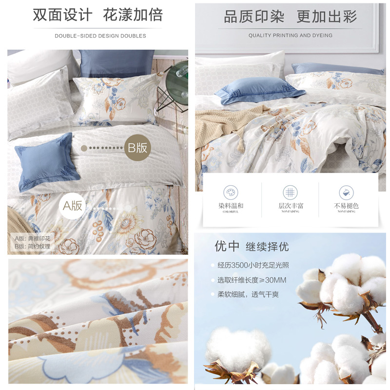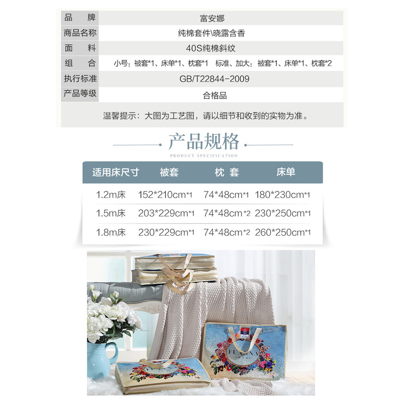 晓露含香 床单四件套(被套1件床单1件枕套2件)(适合1.8米床)【纯棉/灰】 |