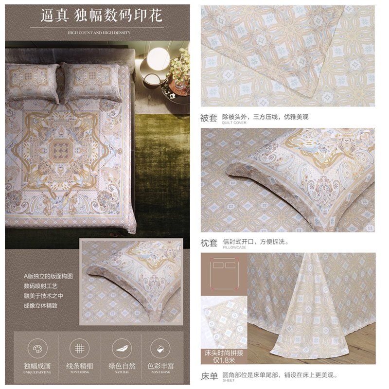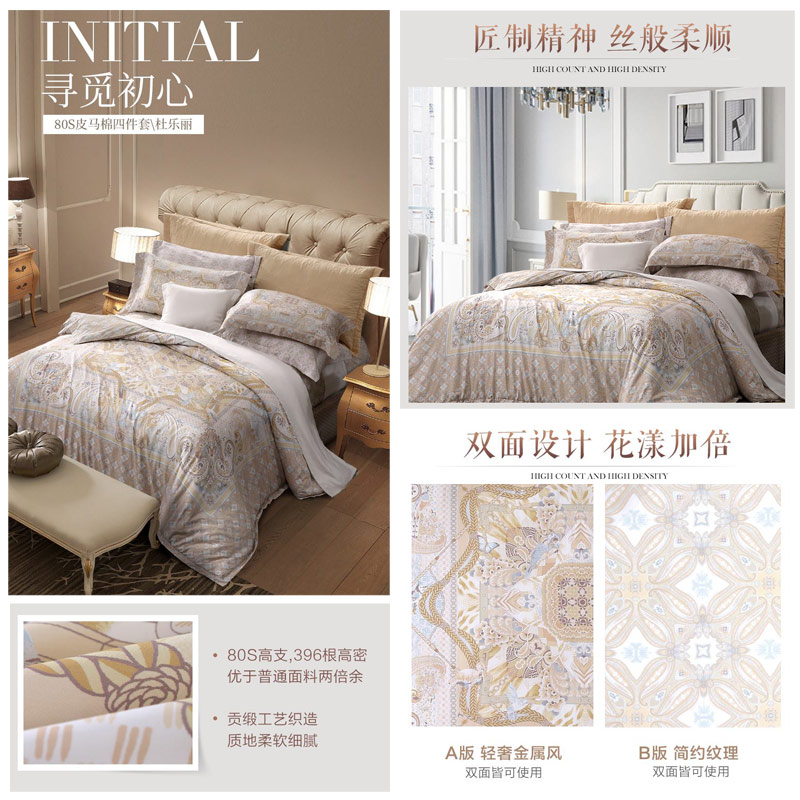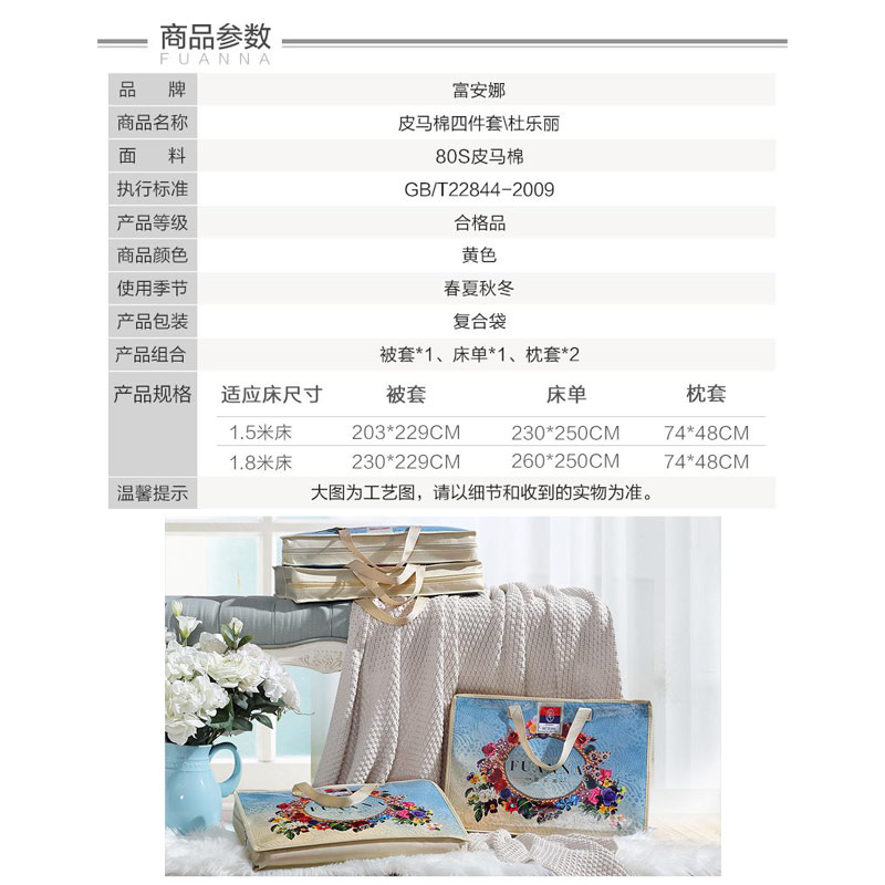 杜乐丽 床单四件套(被套1件床单1件枕套2件)(适合1.5米床)【皮马棉/黄】 |