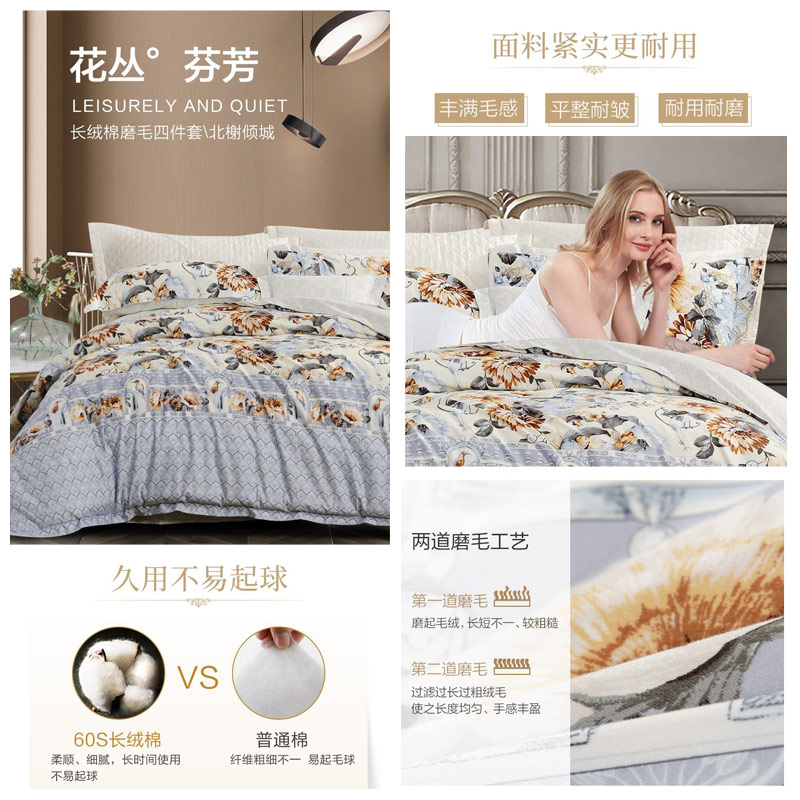 北榭倾城 床单四件套(被套1件床单1件枕套2件)(适合1.8米床)【纯棉磨毛/橙】 |