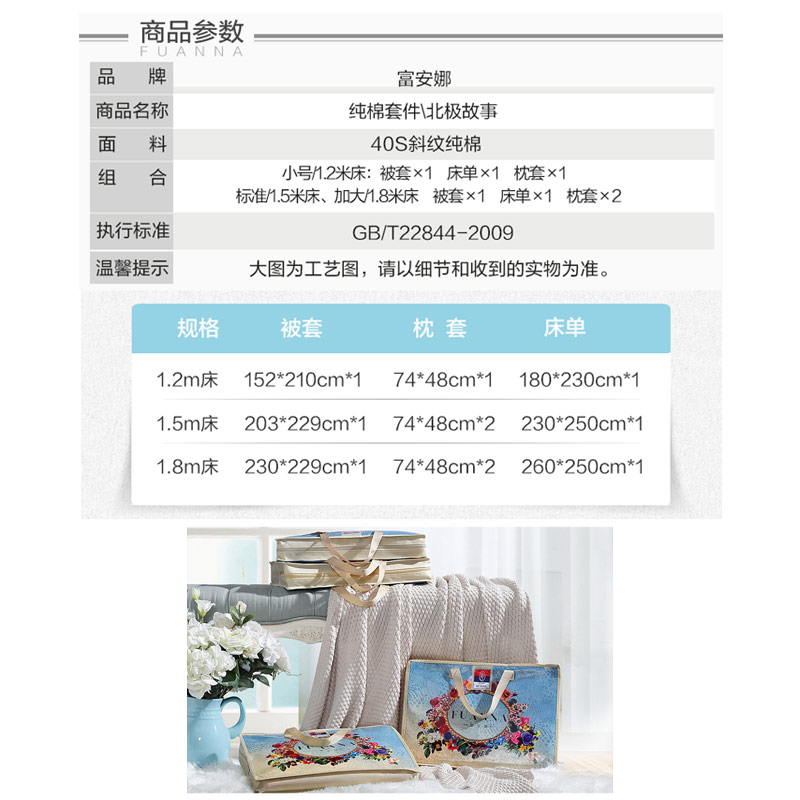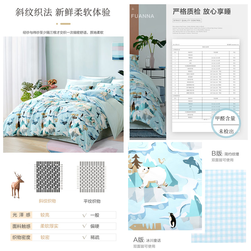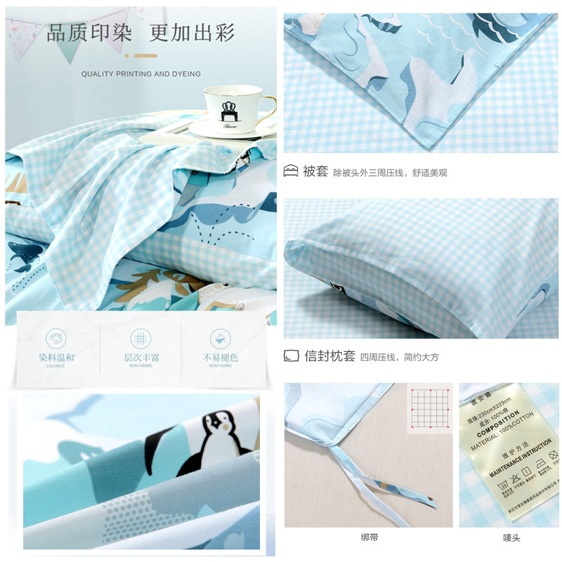 北极故事 床单四件套(被套1件床单1件枕套2件)(适合1.8米床)【纯棉/蓝】 |