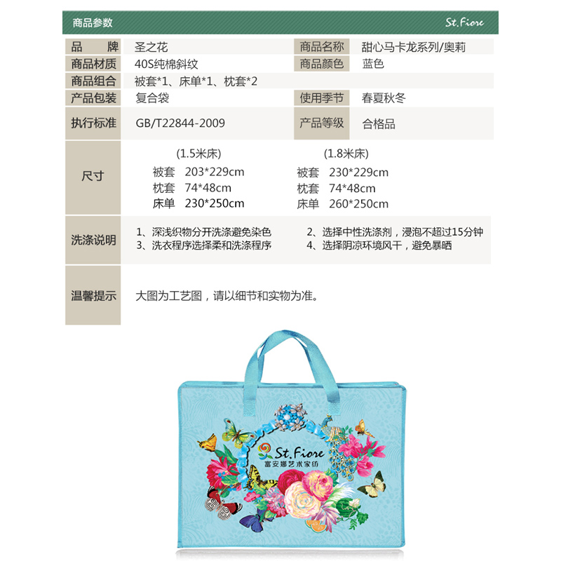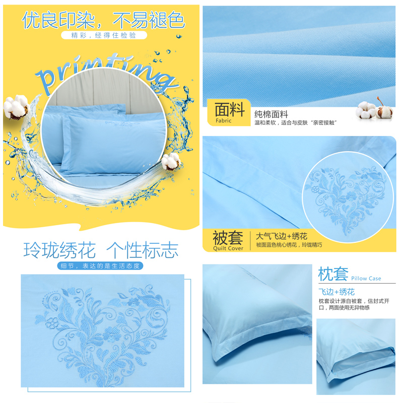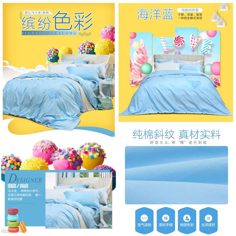 甜心马卡龙系列·奥莉 床单四件套(被套1件床单1件枕套2件)(适合1.8米床)【纯棉/蓝】 |