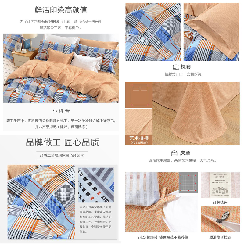 蓝调轻吟 床单四件套(被套1件床单1件枕套2件)(适合1.5米床)【纯棉磨毛/蓝】 |
