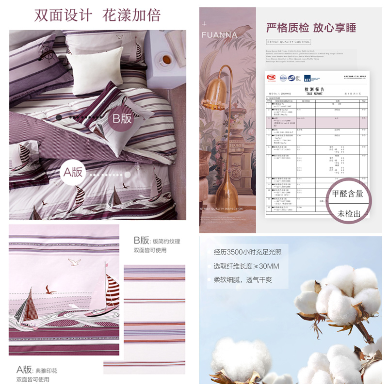 航海世界 床单四件套(被套1件床单1件枕套2件)(适合1.5米床)【纯棉/紫】 |