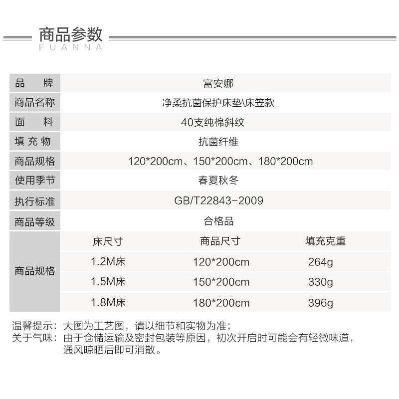 床笠款 净柔抗菌保护床垫 (床垫1件)(适合1.5米床)【面料:纯棉;填充:聚酯纤维(含抗菌纤维)/图片色】 |