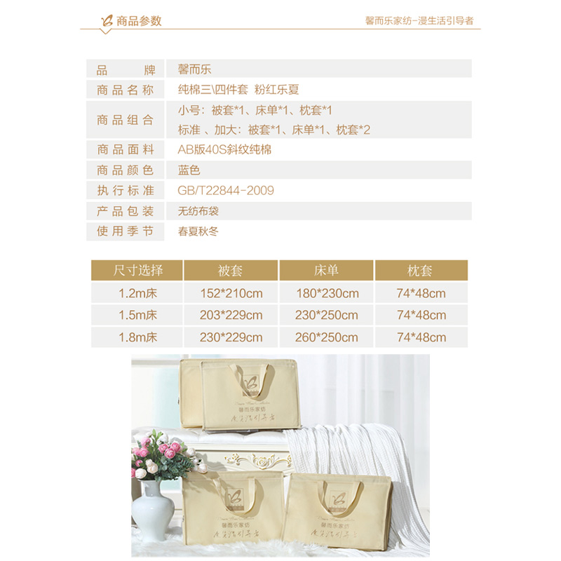 粉红乐夏 床单三件套(被套1件床单1件枕套1件)(适合1.2米床)【纯棉/蓝】 |
