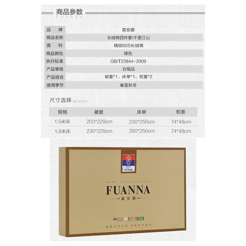 千里江山 床单四件套(被套1件床单1件枕套2件)(适合1.8米床)【精梳棉/绿】 |