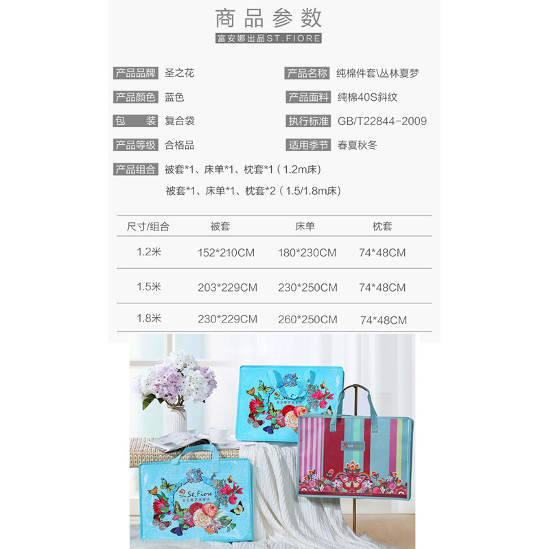 丛林夏梦 床单四件套(被套1件床单1件枕套2件)(适合1.5米床)【纯棉/蓝】 |