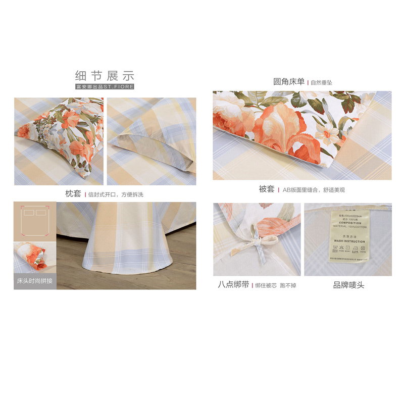 安暖如夏 床单四件套(被套1件床单1件枕套2件)(适合1.5米床)【纯棉磨毛/橙】 |