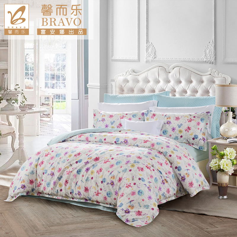 花恋初语 床笠四件套(被套1件床笠1件枕套2件)(适合1.8米床)【纯棉/蓝】 |