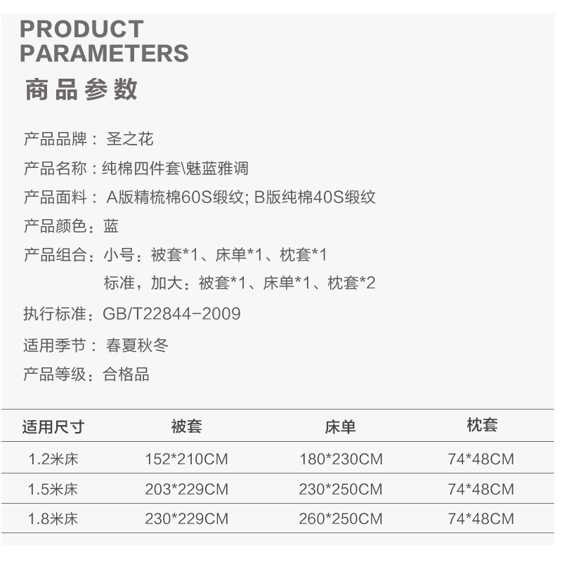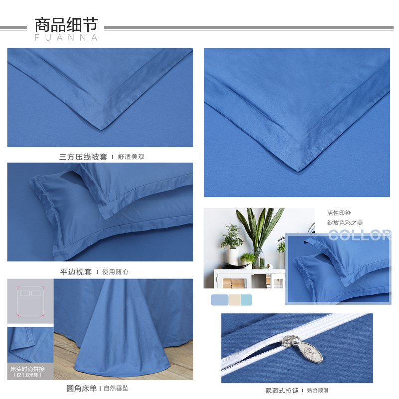 魅蓝雅调 床单三件套(被套1件床单1件枕套1件)(适合1.2米床)【纯棉缎纹/蓝】 |
