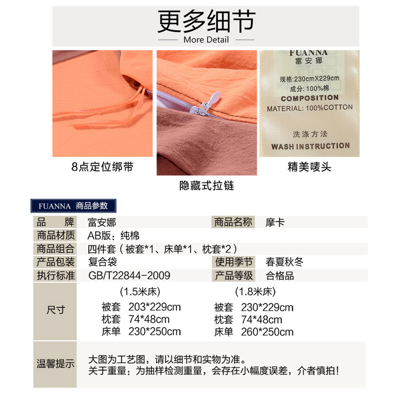 摩卡 床单四件套(被套1件床单1件枕套2件)(适合1.5米床)【30支水洗棉/咖啡】 |