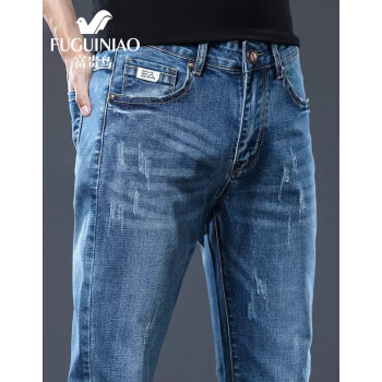 富贵鸟牛仔裤男士夏季2020新品韩版潮流修身小脚裤休闲弹力裤子男裤 8913深灰 30 |