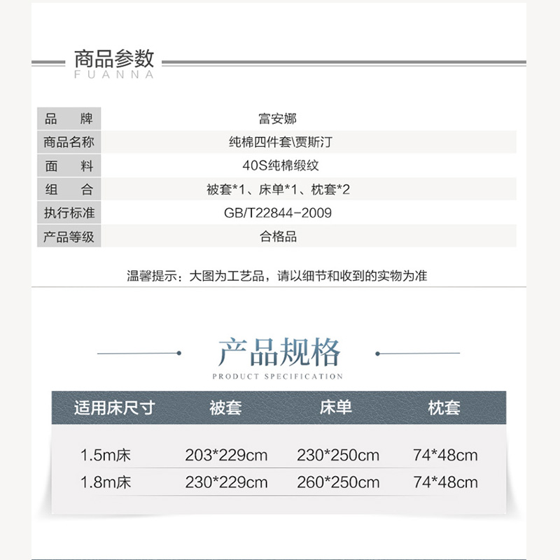贾斯汀 床单四件套(被套1件床单1件枕套2件)(适合1.5米床)【40支缎纹纯棉133*95/灰】 |