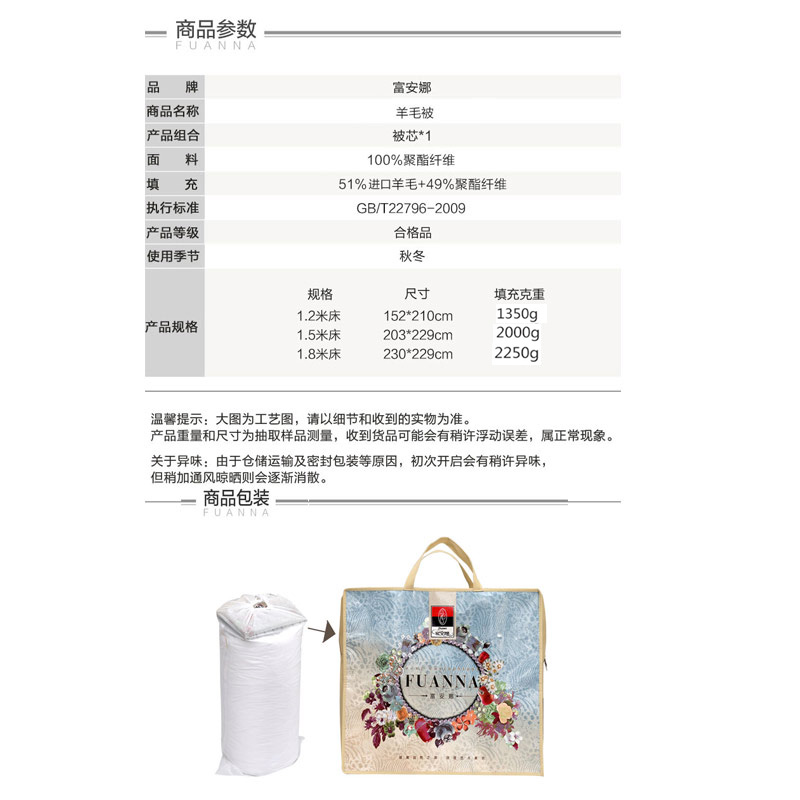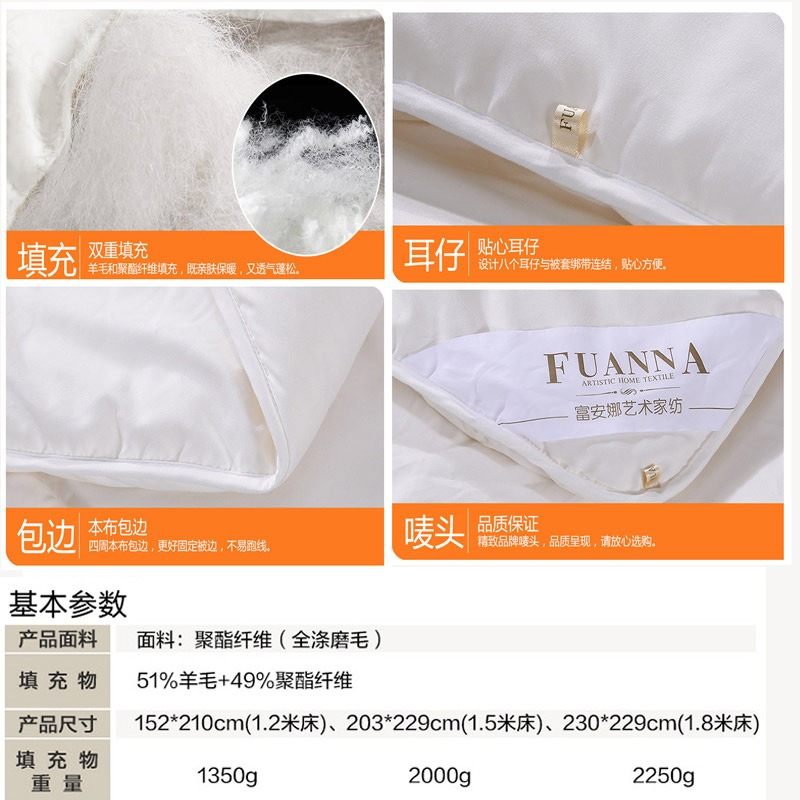 进口混合羊毛被 (被芯一件)(适合1.2米床)【填充物:进口羊毛+聚酯纤维/白】 |