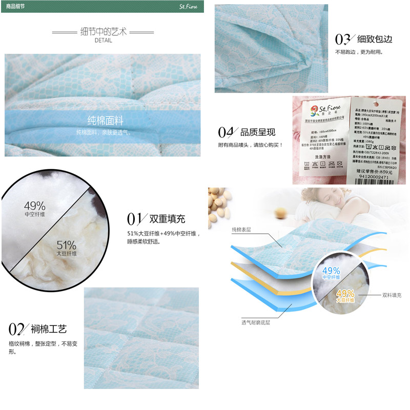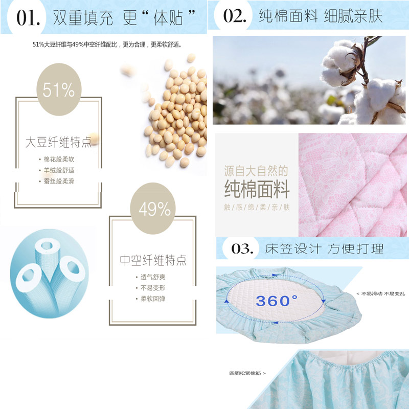 醇美大豆保护床垫 床笠款(床垫1件)(适合1.2米床)【40支斜纹128*68棉/粉】 |