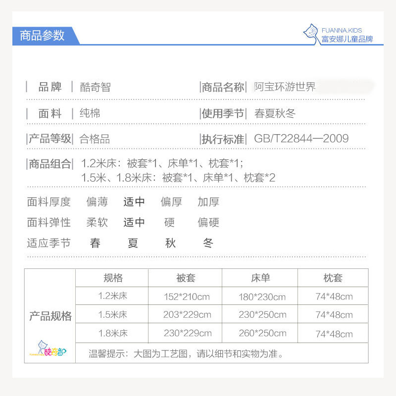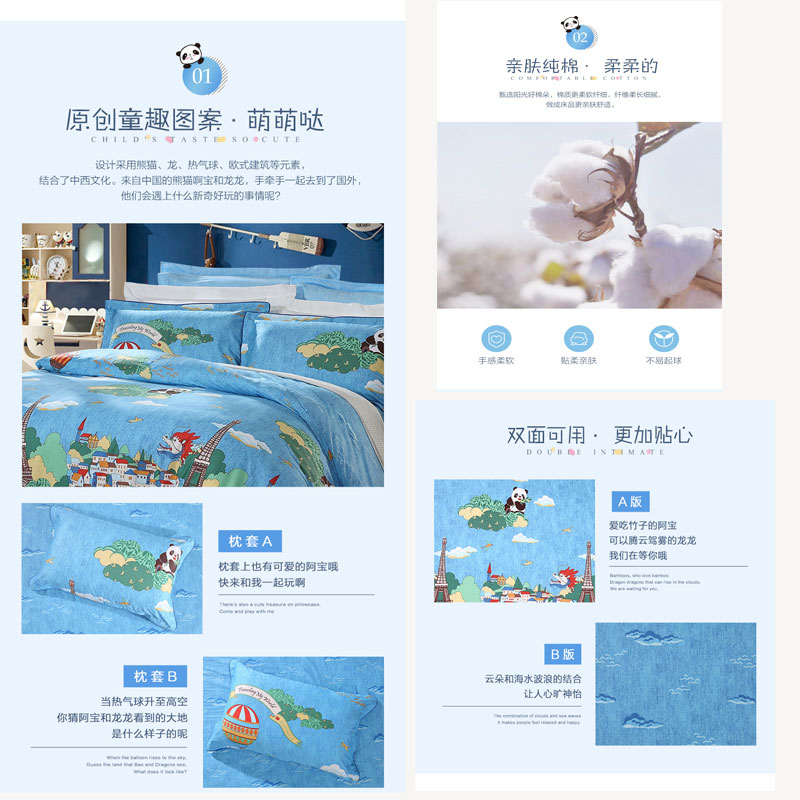 阿宝环游世界 床单三件套(适用1.2米床)(被套1件床单1件枕套1件)【纯棉/蓝】 |