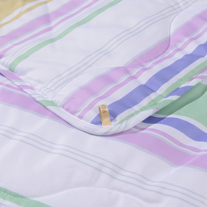 优格小调涤天丝印花夏被(夏被一件)(适合1.8米床)【面料:聚酯纤维+莱赛尔纤维;填充:聚酯纤维/紫】 |