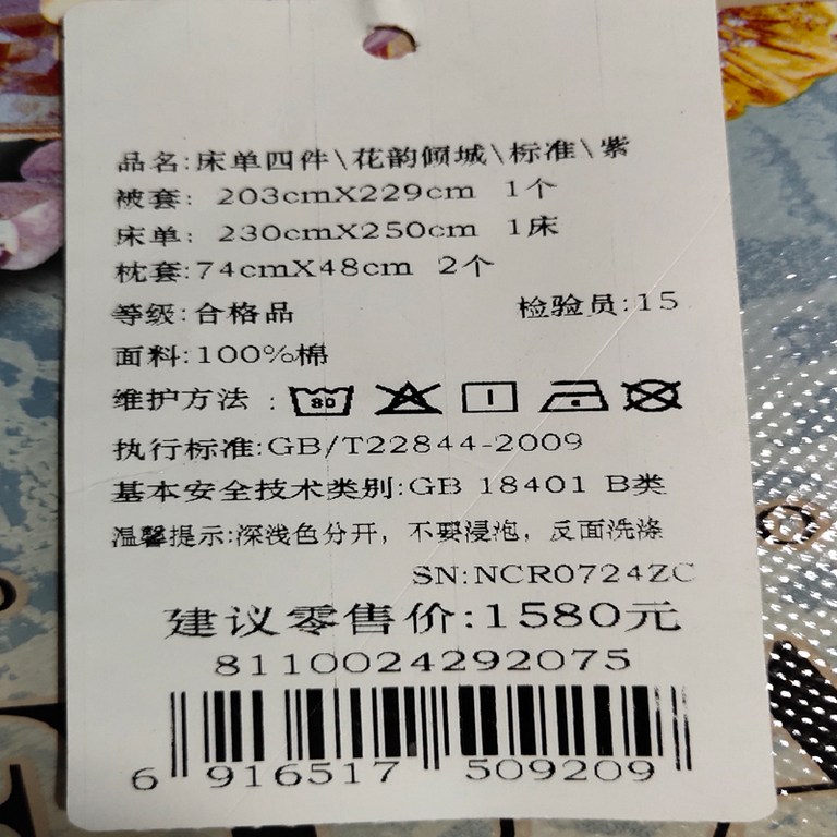 花韵倾城印花四件套(被套一件床单一件枕套两件)(适用1.5米床)【纯棉/紫】 |