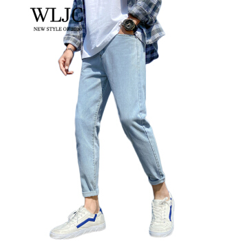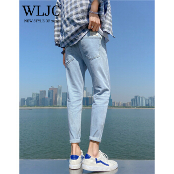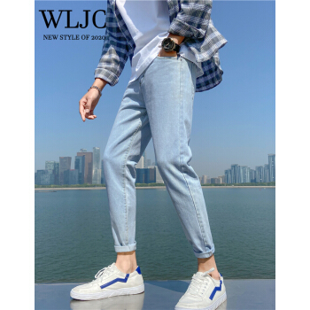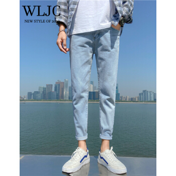 威廉爵驰牛仔裤男20夏季薄款潮流宽松直筒休闲九分长裤韩版潮牌百搭裤子男 浅蓝色 30(105-115斤) |