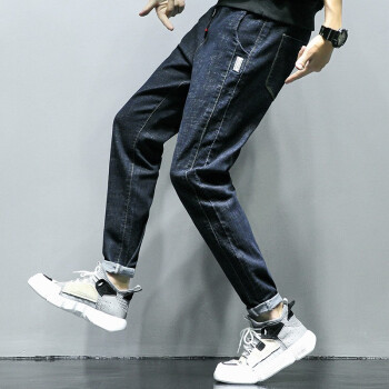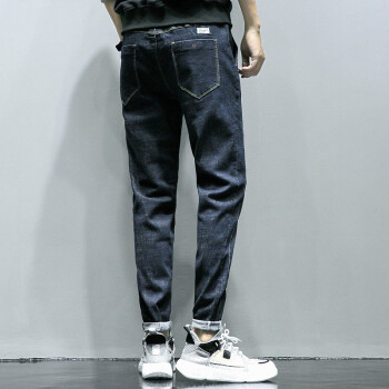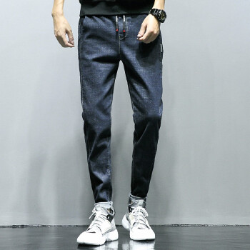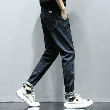 仕季牛仔裤男潮流长裤男装百搭休闲裤春夏季新款直筒宽松大码哈伦裤子男韩版修身小脚裤 蓝色 30 |