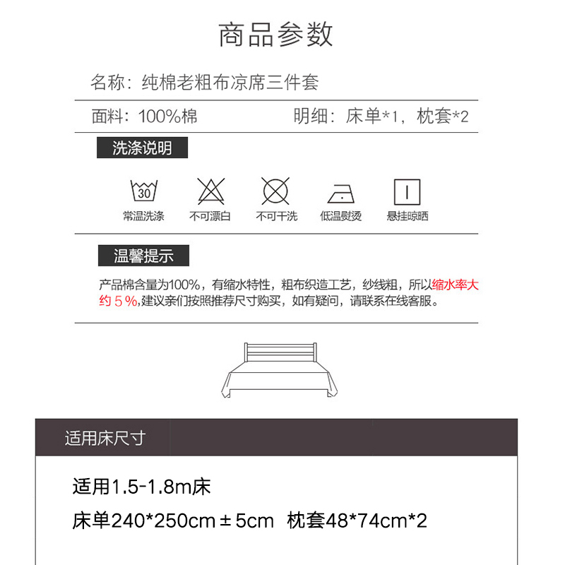 全棉麻空调软凉席老粗布床单三件套【棉/叶语悠然】 |