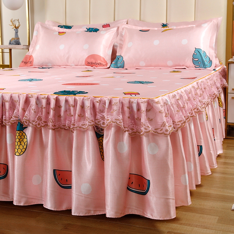 印花蕾丝床裙款冰丝席凉席三件套【冰丝(聚酯纤维)/甜蜜夏日】 |