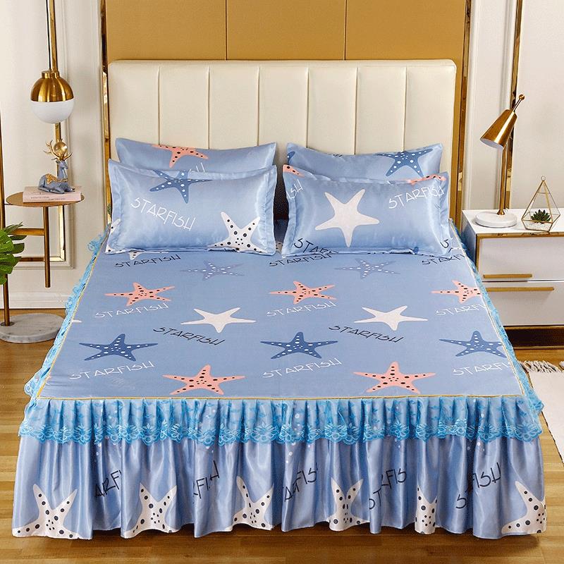 印花蕾丝床裙款冰丝席凉席三件套【冰丝(聚酯纤维)/海星】 |