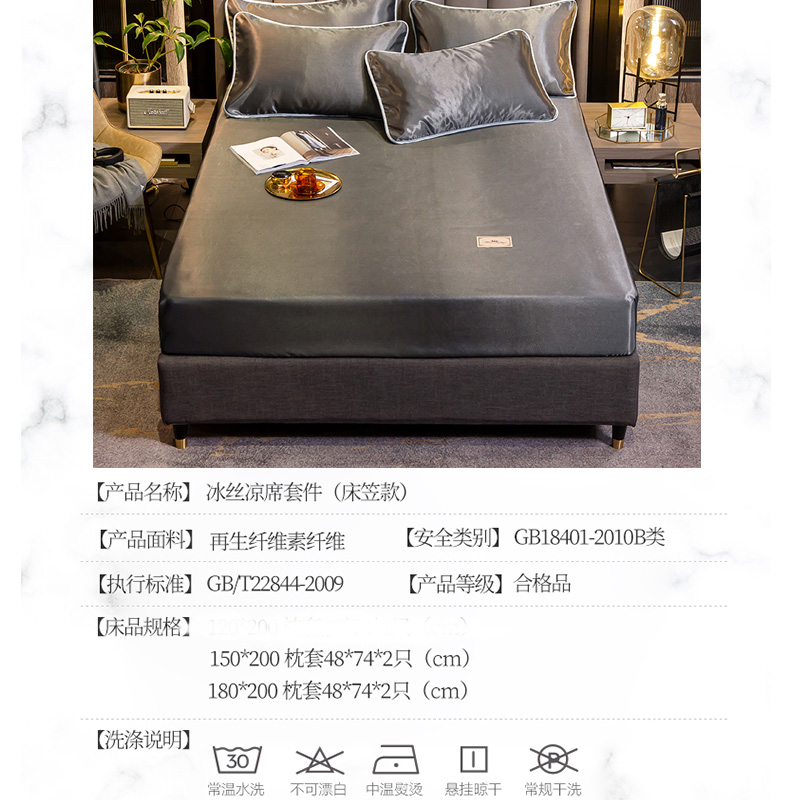 【柔软清爽 凉而不冰】无印床笠款冰丝席三件套【冰丝面料(聚酯纤维)/贵族-深灰】 |